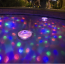 Light up your Saturday nights with underwater light shows put on with your very own Disco Ball! Four bright colorful LEDs create seven different light shows on the surface and bottom of your pool. Runs on three (3) AA batteries. Floats on pool surface. Do not submerge in water.