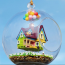Fully detailed, beautiful and unique UP Flying House with Balloons DIY Miniature in a glass crystal ball! For all DIY, UP movie and miniatures fans!